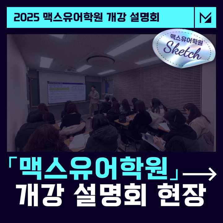 안녕하세요. 불당동 영어학원 맥스유어학원입니다. 지난 12월 19일 금요일 맥스유어학원 2025 개강설명회가 많은 관심 속에 마무리되었습니다. 바쁜 일정에도 불구하고 직접 참석해 주신 학부모님들께 진심으로 감사드립니다. 설명회가 진행되는 동안 참석해 주신 학부모님들께서 편안히 드실 수 있도록 간단한 간식과 음료를 준비했습니다. 설명회에 참석해 주신 학부모님들께 방학 특강 및 정규반 수강과 관련한 소정의 혜택을 함께 안내드렸습니다. 방학 특강 및 정규반 개강 일정에 대한 안내 링크를 아래에 정리해 두었습니다:) https://blog.naver.com/maxyouenglish/224094604035 https://blog.naver.com/maxyouenglish/224087241335 상담....... <img src="https://blogthumb.pstatic.net/MjAyNTEyMjhfMTIg/MDAxNzY2OTE1NzY5ODI0._N1NpO2v1R2pzXtHkXnd8lDFHCkcqhumKvIyeFL7FGAg.Q9hy6nT0ZupjcwpulsUCF-9DsU9EX10eUhcqj6okT0cg.PNG/%C1%A6%B8%F1%C0%BB_%C0%D4%B7%C2%C7%D8%C1%D6%BC%BC%BF%E4._%2834%29.png?type=s3" />
