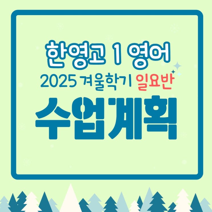 [한영고1 영어] 2025 겨울학기 수업계획안(일요반⭐수능심화반)
