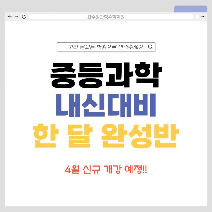 과수원과학수학학원 등록번호 3429 중등과학 내신대비 4주 완성반 시간표 안내드립니다. 개강 일정은 3월 말 공지 예정입니다. 기타 문의 사항이 있으실 경우 학원으로 전화 부탁드립니다. 010 6482 2526 / 041 552 2526 <img src="https://blogthumb.pstatic.net/MjAyNjAzMTVfMTg3/MDAxNzczNTQwNjE1NzU4.eYoyQXn5Pa3dnwAMJ_FzfKJjchW42M1oTTHJ90bu04Eg.Miwc3J370ryNtHiSLEne034q62dj7L1lJtPGGabtAZIg.JPEG/1.jpg?type=s3" />