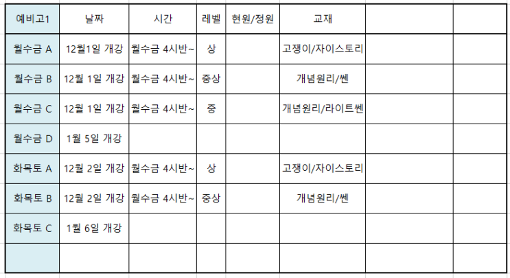 주3회 수업합니다 4시반~7시반 정규수업과 9시까지 첨삭수업 병행합니다 정원은 5명입니다 매주 테스트 실시합니다 12월 중순(13일)까지는 수시 입학가능하고 그 이후로는 테스트 합격자만 입학가능합니다 특강및 타학년 시간표는 곧 정리하여 공지드리겠습니다 감사합니다 <img src="https://blogthumb.pstatic.net/MjAyNTExMjlfNjQg/MDAxNzY0NDAyOTk1MjEx.hFf6n5gGDIbHUBTY3Mgo-LAo89x58ucjAL-Ro4fAJSYg.KJauctEHURCBNhVnnsJmxBAJpZyqsFkJNoVOxEtghO8g.PNG/image.png?type=s3" />