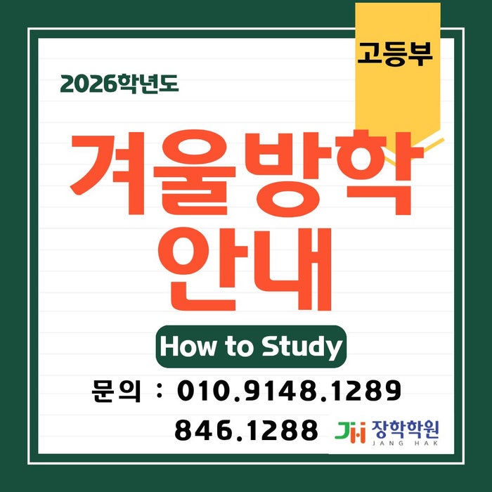 안녕하세요. 장학학원입니다. 이번 겨울방학에대해 안내드립니다 !! 저희 장학학원은 내일 1월 1일 (목) ~ 1월 4일 (일) 까지 겨울방학을 갖게됩니다. 행복한 연말 및 새해 보내세요 : ) <img src="https://blogthumb.pstatic.net/MjAyNTEyMzFfMTQg/MDAxNzY3MTc5Mjk0MzM1.odmIIcMZcXppbogEo3xMdLevbQKZL3d8qkgnGglzuPgg.toe6lROSdZPGy3Rd7e8_5GL016A_8W0WBDLk1nQDtjYg.JPEG/%C1%A6%B8%F1%C0%BB_%C0%D4%B7%C2%C7%D8%C1%D6%BC%BC%BF%E4._%285%29.jpg?type=s3" />
