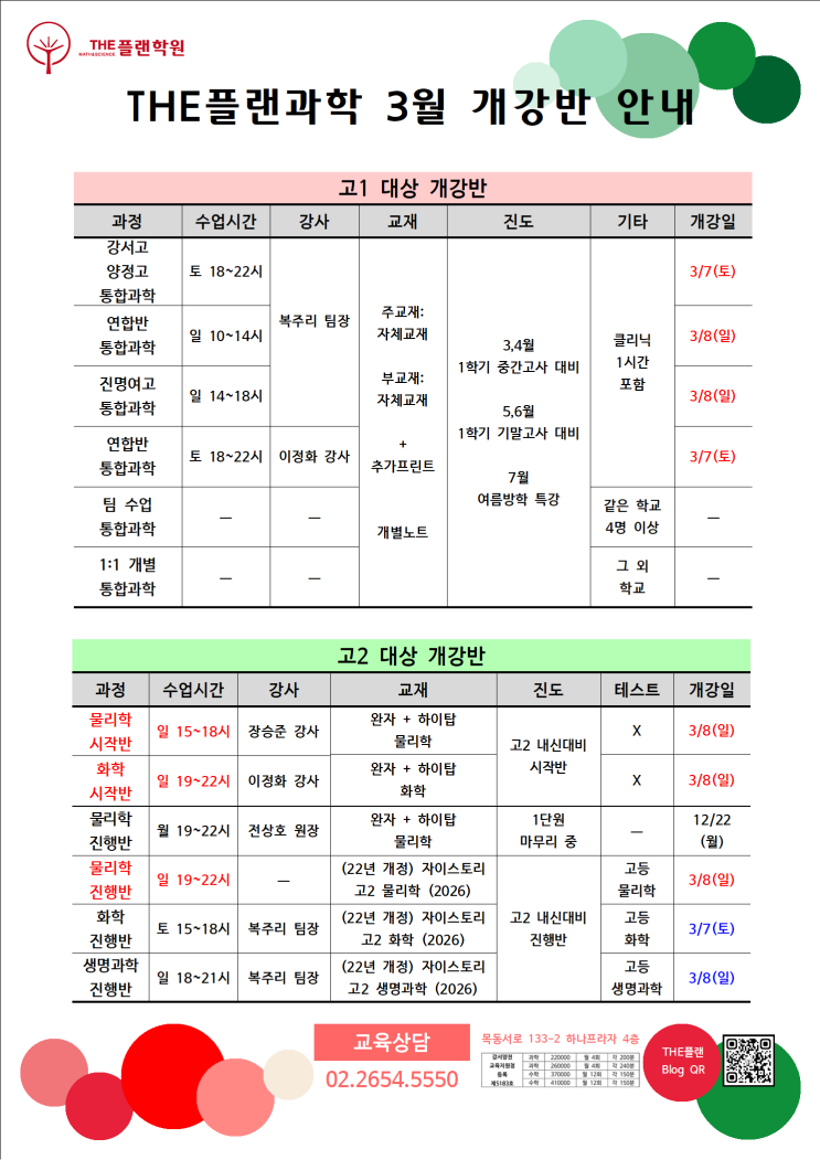 [개강 안내] 권유현T, 등촌고 1학기 내신반 개강!!