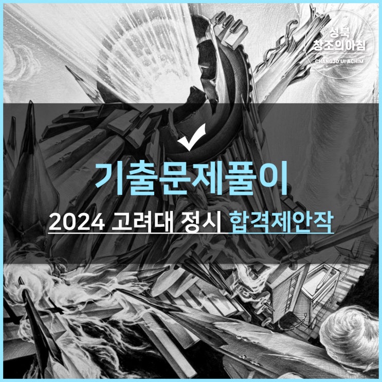 안녕하세요. 성북창조의아침 미술학원입니다. 2024학년도 고려대 정시 기출문제를 풀어보았는데요. 고려대학교 미대는 정시 때 발상과표현이라는 실기 유형을 보게 되는데요. 제시물이 주어지면 주제에 맞게 화지에 제시물들을 구성하고 배치하는 실기 유형으로 아이디어성, 구성력, 표현력을 요구하는 실기 유형입니다. 고려대 미대만의 실기 유형으로 오직 연필 한 자루만으로 진행하는 실기 유형입니다. 2024 고려대 디자인조형학부 정시 주제 24학년도 고려대 정시 주제입니다. 예전에는 자유표현이라는 실기 유형이었는데 명칭만 바뀌고 현재는 발상과표현입니다. 피아노, 구름, 연필이 출제가 되었습니다. 2024 고려대 발상과표현 정시 합....... <img src="https://blogthumb.pstatic.net/MjAyNjAyMTNfMTE3/MDAxNzcwOTg0NjYwNjI5.BdZtLAYOQM22ko644OLDK3QOc-FTt5EshXtODnmFs8Ig.6xCMuhNiDs4XfaejtaBpw7-Ixri5PcrZcBUv37dbhfQg.JPEG/2024_%B0%ED%B7%C1%B4%EB_%C7%D5%B0%DD%C1%A6%BE%C8%C0%DB_%286%29.jpg?type=s3" />