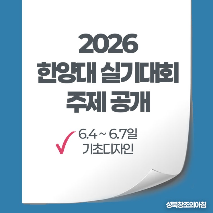 안녕하세요. 성북창조의아침 미술학원입니다. 이번 한양대 에리카에서 실기대회를 개최합니다. 한양대 에리카 실기대회는 주제를 먼저 공개하는데요. 주제은행에서 추첨해서 출제하는 방식입니다. 2026 한양대 에리카 실기대회 소식은 따로 올려드린 포스팅이 있으니 참고해 주세요. ▼ 2026 한양대 에리카 실기대회 참가방법 ▼ 한양대 에리카는 기초디자인 단일 실기입니다. 회차는 4회차로 구성되어 있고 6월 4일부터 7일까지 진행합니다. 한양대 실기대회는 주제어 발표를 30개씩 합니다. 3개의 그룹이 주어지는데 각 그룹별로 10개씩의 주제어로 되어있습니다. 그 3개의 그룹 중에 2개 그룹을 추천한 뒤, 추첨된 2개 그룹에서 1개씩 총 2개....... <img src="https://blogthumb.pstatic.net/MjAyNjA0MDNfNTQg/MDAxNzc1MTkzNjMyMzUy.hNd78Dl1dN2DUiowwFPifaOB_E-I4Wbw11Ft-MGESIwg.GsiWC1bEmYXyPJ28P9Uh1c2DvCqVN4BWaVUtXYjKcr8g.JPEG/2026_%C7%D1%BE%E7%B4%EB_%BF%A1%B8%AE%C4%AB_%BD%C7%B1%E2%B4%EB%C8%B8_%C1%D6%C1%A6_%B0%F8%B0%B3_%282%29.jpg?type=s3" />