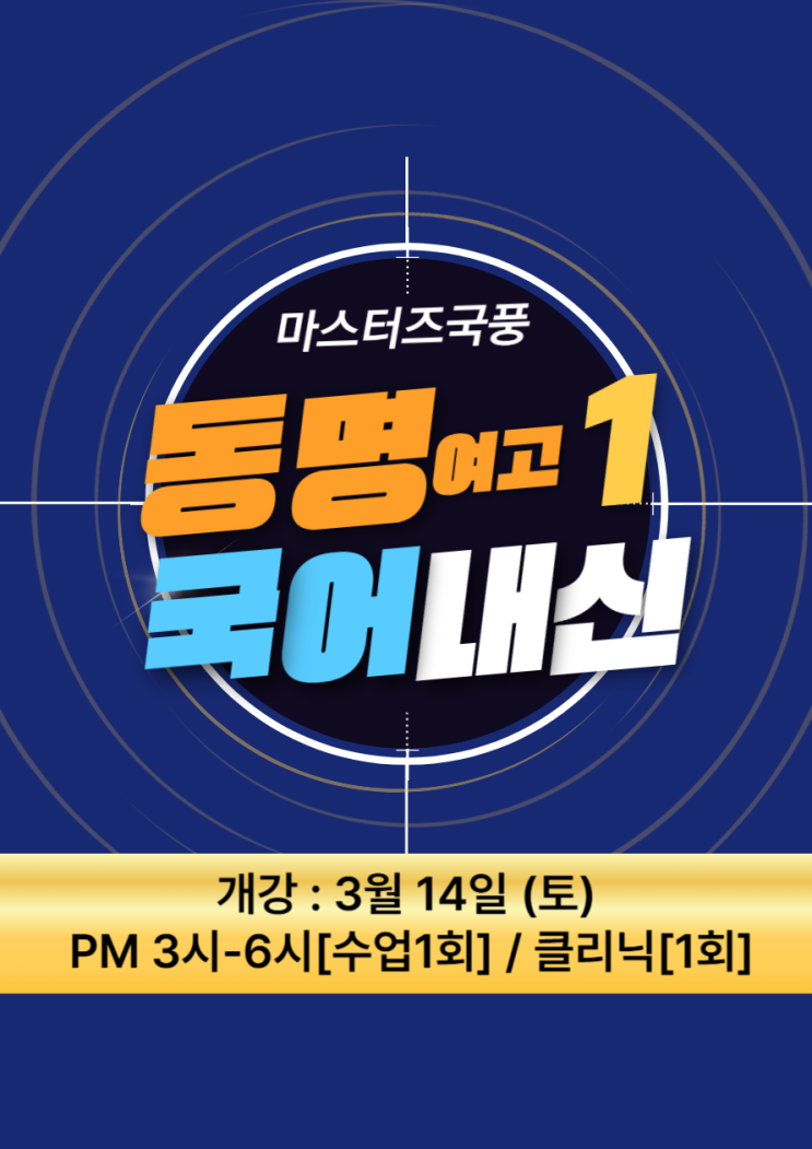 2026학년도 1-1학기 동명여고 공통국어 내신대비 ◈ 기간 : 3월 14일~ 시험 직전까지 (8주 완성) ◈ 수업시간 : 매주 토요일 3-6시 [3시간 강의 1시간 문제풀이] ◈ 교재 : 학교채택 교과서 + 학원 제작 교재 + 워크북 ◈ 담당 : 송윤정 선생 + 원장 클리닉 감독 ◈ 수업 내용 : ① 시험 범위 교과서 작품 분석 강의 ② 학교 배부 보충 유인물 작품 강의[문법] ◈ 수업방식 : 시험 범위 작품 분석 강의 → 기출 분석을 통해 작품의 포인트 공략 → 출제 가능한 연계 작품 분석 → 워크북을 통해 복습 → 출제 예상 문제 풀이(시험 2주 전부터) #동명여고1국어내신대비 #마스터즈학원 #국풍학원 #국어내신전문학원 <img src="https://blogthumb.pstatic.net/MjAyNjAzMDdfNjIg/MDAxNzcyODQ0OTUyOTgz.xu3prsJfTMjudimmbMHRGkR5kUz3I43CKMceIovLX4Ig.lxqw0nrvMq2Dt7oPDr-hUo8BF2dbKEprvKc4SmF0BJsg.PNG/009.png?type=s3" />