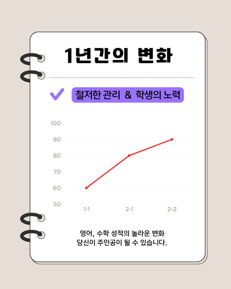 중등 영어 수학 성적 향상 - 1년간의 변화