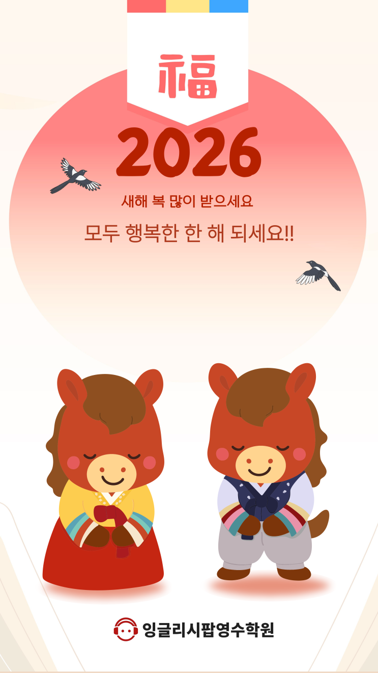 안녕하세요! 잉글리시팝영수학원 입니다. 드디어 2026년의 첫 태양이 떠올랐습니다.새해를 맞이할 때마다 우리는 늘 설렘과 기대를 품게 되죠. 여러분은 어젯밤 어떤 꿈을 꾸셨나요? 혹은 오늘 아침 어떤 다짐으로 하루를 시작하셨나요? 2026년, '생각'을 '현실'로 만드는 해 지난 한 해를 돌이켜보면 '할까 말까' 고민만 하다가 놓쳐버린 기회들이 누구나 하나쯤은 있을 거예요. 하지만 2026년은 다릅니다. 올해는 우리가 머릿속으로만 그려왔던 계획들을 하나씩 실행에 옮기고, 결국 이뤄낼 차례입니다. 거창한 목표가 아니어도 좋습니다. 작은 성취들이 모여 결국 커다란 변화를 만들어낸다는 것을 믿습니....... <img src="https://blogthumb.pstatic.net/MjAyNjAxMDFfODIg/MDAxNzY3MjA2NjE0NTkw.dsnMcuZwlMYOdWmdf9bycp354B_QbW_kdYqaTLXN-pAg.4HvTs84cbCrwm9ClGWjcGZN0MvCwHi05YA0Zxt2PYnEg.PNG/%C1%A6%B8%F1%C0%BB_%C0%D4%B7%C2%C7%D8%C1%D6%BC%BC%BF%E4._%283%29.png?type=s3" />