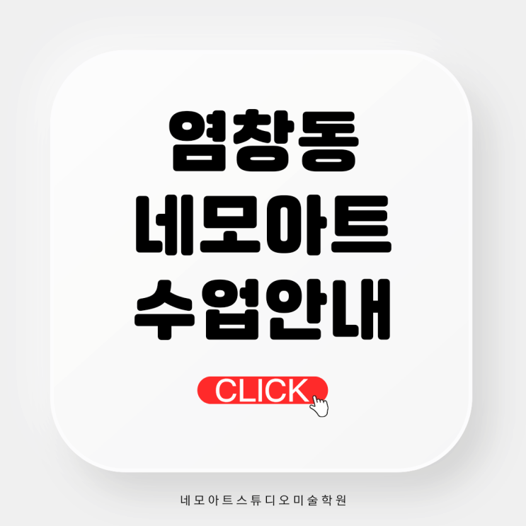 안녕하세요 염창동 유초등미술 전문학원 네모아트입니다. 요즘 네모아트는 신입생 상담과 수업으로 정말 바쁘고도 기분 좋은 연말을 보내고 있어요☺️ 상담을 진행하다 보면 학부모님들께서 공통적으로 궁금해하시는 부분들이 있더라구요. 오늘은 그 질문들을 모아 조금 더 자세히 안내드리고자 합니다❤️ 네모아트에는 어떤 반이 있나요? ■ ⭐평일 정규반(주1회 /주2회 /주3회 中 선택) · 5세부터 수업 참여 가능합니다. · 드로잉 기초, 수채화, 만들기 수업까지 골고루 수업하는 반 · 그림 3 : 만들기 1 비율로 수업 (비율은 상황에 따라 달라질 수 있습니다.) · 미취학아동은 60분 수업, 초등학생은 70분 수업입니다. · 월-금 : 오후 1....... <img src="https://blogthumb.pstatic.net/MjAyNTExMjZfMTU4/MDAxNzY0MTY2NzEzMzE2.hXZ3GSAIKX6nwkW7w11gpZ51uqJLY7M-3JxrMXGWhi4g.XTmI2Kv3Uus3AS_F3Sme31iHjapAcyIxdIpimtGTrW4g.PNG/%BF%B0%C3%A2%B5%BF_%C3%CA%B5%EE%B9%CC%BC%FA_%BC%F6%BE%F7%BE%C8%B3%BB.png?type=s3" />