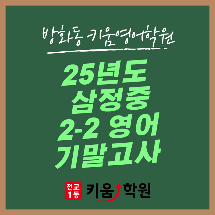 안녕하세요, 방화동 삼정중 영어전문학원 키움학원입니다. 오늘은 삼정중학교 2025학년도 2학기 영어 기말고사를 실제 시험지 기반으로 분석하여, 핵심 개념·어휘·문법·지문 흐름·오답 패턴·유형별 공략 포인트까지 정리해드리겠습니다. 이번 시험은 단원 어휘 + 핵심 문법 + 교과서 Reading 지문 + 실용문 + 대화문까지 전 범위를 고르게 다루고 있었고, 전체 난이도는 중하~중으로 평가됩니다. 그러나 세부 문항 구성이 꼼꼼하게 출제되어 실수 방지가 중요한 시험이었습니다. 1. 어휘·그림 해석 문제 분석 ✔ 특징 교과서 필수 어휘 위주 그림–단어 대응 능력 확인 너무 어렵지는 않으나, 단어 뜻 정확한 암기가 필요 ✔ 핵심 어휘 sled....... <img src="https://blogthumb.pstatic.net/MjAyNTEyMDlfNDQg/MDAxNzY1Mjc2ODI4NjY2.8ehWl0SvQsAsrygP4aXDe1WfYbmMEsc2zygkIBiZpxYg.FC9blpjtQULLM75v8aZHYlFrQmUjSsFi4toaqFnQdpYg.PNG/%B9%E6%C8%AD%B5%BF_%BB%EF%C1%A4%C1%DF_%BF%B5%BE%EE%C0%FC%B9%AE%C7%D0%BF%F8_%C5%B0%BF%F2%C7%D0%BF%F8.png?type=s3" />