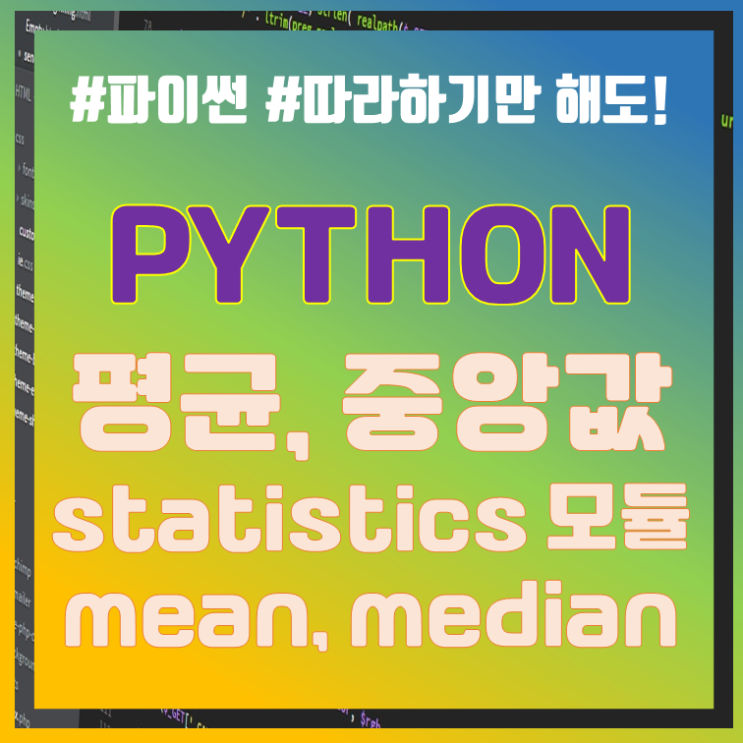 안녕하세요? 코딩클래스입니다. 파이썬을 기초부터 하나씩 차근차근 배워보는 시간입니다 지난 시간 math 모듈에 대해 알아보았습니다. 오늘도 math 모듈과 관련된 내용이니 기억이 안 나시는 분은 한번 복습하는 것을 추천합니다. https://blog.naver.com/codingclass/224178668890 오늘은 statistics 모듈을 알아볼 건데요, 평균값, 중앙값을 구하는 겁니다. math 모듈에는 많은 함수들이 있지만 이상하게도 평균, 중앙값을 구하는 함수가 없습니다. 엑셀에서도 average 로 간단하게 해결하는데 말이죠. c언어나 다른 프로그래밍 언어를 공부한 분이라면 직접 하나씩 더해서 나누는 방법이 익숙할 겁니다. 아니면 sum 함수를 통해 합을 구하는....... <img src="https://blogthumb.pstatic.net/MjAyNjAyMTBfMzcg/MDAxNzcwNzAwODU2NDk0.ppbQ6w4QVvjnIPZGespF3hzQguhZ6XiqcTfeW2iqVu4g.tOKSoP_mI-Tgq4dxz11DQVGZ2SkgOCDlxSrXiuR_RQwg.PNG/35_staistics.PNG?type=s3" />