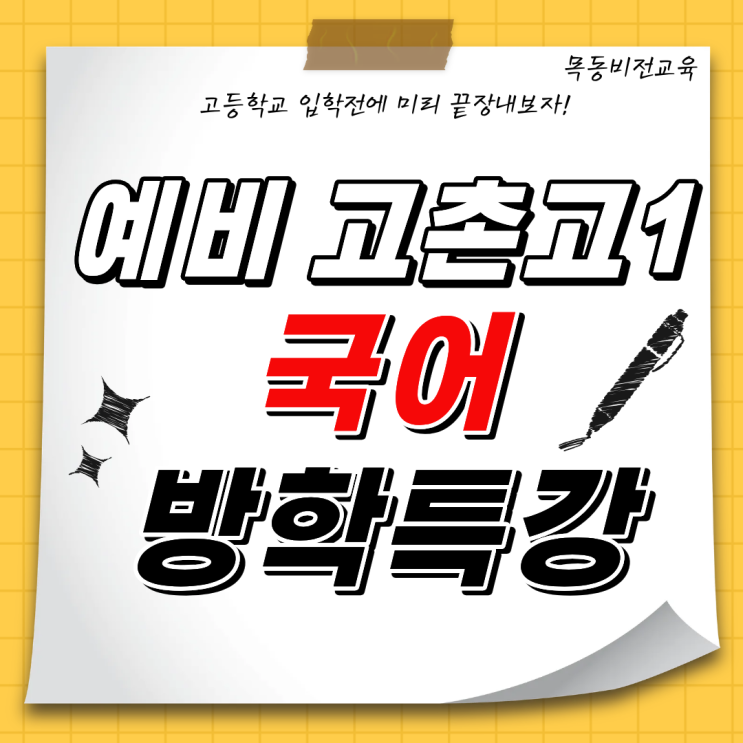 고촌고 예비고1 방학 국어 특강 안내 고촌고 전문강사가 직접 강의하는 고촌고 맞춤 국어 특강 ✨ 3월 모의고사 대비 & 고1 국어 선행학습 ✨ 개강일 : 2월 6일(금) 오후 1시 수업 일정 : 매주 금요일 수업 시간 : 오후 1시 ~ 4시 (3시간 수업) 특강의 핵심 목표 1️⃣ 3월 모의고사 실전 대비 2️⃣ 고1 공통국어 선행학습 3️⃣ 고촌고 맞춤 시험 대비 ✍️ 본 특강의 가장 큰 특징은 **‘고촌고 스타일 적응’**입니다. ✔️ 고촌고 기출 지문 & 문제 유형 학습 ✔️ 교과서 밖 지문 독해 연습 ✔️고촌고 시험에서 자주 요구되는 사고 과정 훈련 ️ 주차별 수업 내용 (고촌고 맞춤 구성....... <img src="https://blogthumb.pstatic.net/MjAyNjAxMjNfMjk1/MDAxNzY5MTU2NjgxNDA1.XqAPxe7EwDEkavCNmdKUvveCvQJIto22eNEPEUw47cAg.36Zvh0p1amytf51vHFDBf8wEY5lEoC5b9AITPFLBbIAg.PNG/%B0%ED%C3%CC%B0%ED_%C6%AF%B0%AD.png?type=s3" />