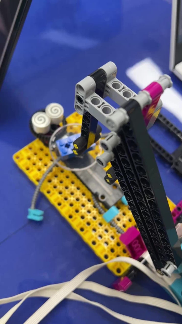 스파이크 프라임(Spike Prime)_ 겨울 학기 9주 차 이번 시간은 '원격 수술' 1차시 수업으로 모형을 완성하고 코딩을 통해 원격 수술을 진행했습니다. '원격 수술'은 의사가 조이스틱과 같은 방식을 활용하여 수술 로봇을 원격에서 제어하여 진행하는 수술을 의미하여 코딩을 통해 로봇 팔이 회전하여 수술을 진행하도록 만들어봤습니다. 모형을 살펴보면 총 3개의 모터가 사용되었습니다. 위에서부터 살펴보면 맨 위에 있는 모터는 회전을 통해 로봇 손(집게)을 열거나 닫을 수 있으며 중간에 위치한 모터는 회전을 통해 로봇 손을 위아래로 움직이게 해줄 수 있으며 마지막으로 맨 아래에 위치한 대형 모터는 회전을 통해 로....... <img src="https://phinf.pstatic.net/image.nmv/blog_2026_02_14_1609/2sCFHoB4Ns_01.jpg?type=f480x480" />