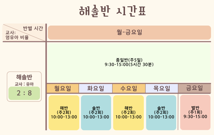 몬테소리 교육은 교구 활동으로 유명하지만, 더욱 중요한 것은 교육 철학 입니다. 몬테소리 교육은 일상생활을 비롯하여 모든 교육 영역에 적용할 수 있는 통합적인 성격을 가지고 있습니다. 해솔반에서는 교구 활동 외에도 몬테소리 교육 철학을 기반으로 한 다양한 교육활동을 경험하는 것을 목표로 합니다. 개별활동과 집단 활동, 실내 활동과 실외 활동, 소근육 활동과 대근육(체육) 활동, 영역별 활동과 주제 통합 활동을 몬테소리 철학을 바탕으로 경험할 수 있지요. 2025년 9월부터 시작된 해솔반의 종일반 아이들은 기대만큼 훌륭한 모습을 보여주며 성장하였습니다. 이 성장을 지켜보며, 교구 활동에 국한되지 않은 통합적인 몬테소리 교....... <img src="https://blogthumb.pstatic.net/MjAyNjAzMTBfMzUg/MDAxNzczMTE4OTIxMjk1.2U8LExEN0ge-HMIZjxtaZdQpmgy8eVMbFqBbtUVAQYog.7dmkgMX7z2rF1-d_ufx4c-SbKreUXjkiFfKVBgi3qJEg.PNG/%C7%D8%BC%D6%B9%DD%BD%C3%B0%A3%C7%A5.png?type=s3" />