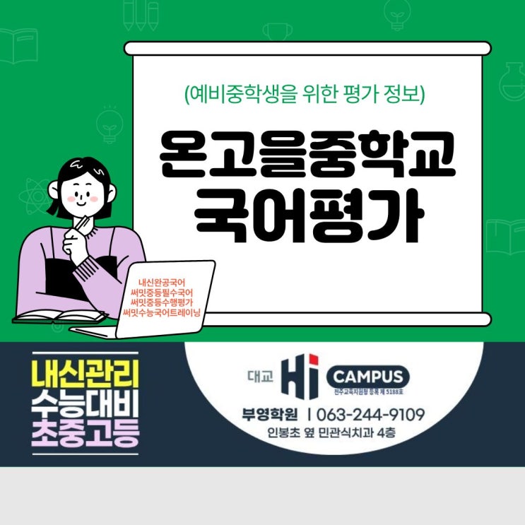 대교하이캠퍼스 전주에서는 2026년 중학교 입학을 앞둔 친구들에게 중요한 국어 평가 정보를 전해드려요. 전주 중등전문학원인 부영하이캠퍼스에서는 중학생 회원들이 열공중인데요. 부영하이캠퍼스에서 공부중인 중학생들이 많이 다니는 온고을중학교에서는 2026년에도 비상(박현숙) 국어 교과서를 사용합니다. 2022 개정 교육과정이 적용된 지금, 단순 지식 전달보다는 '실생활 연계'와 '매체 활용' 능력을 매우 중요하게 평가하는 특징이 있는데요. 역시 에듀테크와 결합한 수업과 평가가 중요하게 대두되고 있습니다. 특히 1학년은 자유학기제와 맞물리는 특징을 염두에 두고 전략을 세워애겠죠. 1학기에는 본격적인 지....... <img src="https://blogthumb.pstatic.net/MjAyNjAyMTJfNiAg/MDAxNzcwODg1NzE4OTcw.JwPtPEjDQD-Ei0Ee15RMSTMLT9f9YoeT5rzjCnEsNfkg.G0nm0ZCUu_Q43ecZDj8VlDgIzs0hmnDGfUnCPHNFaPkg.JPEG/2.jpg?type=s3" />