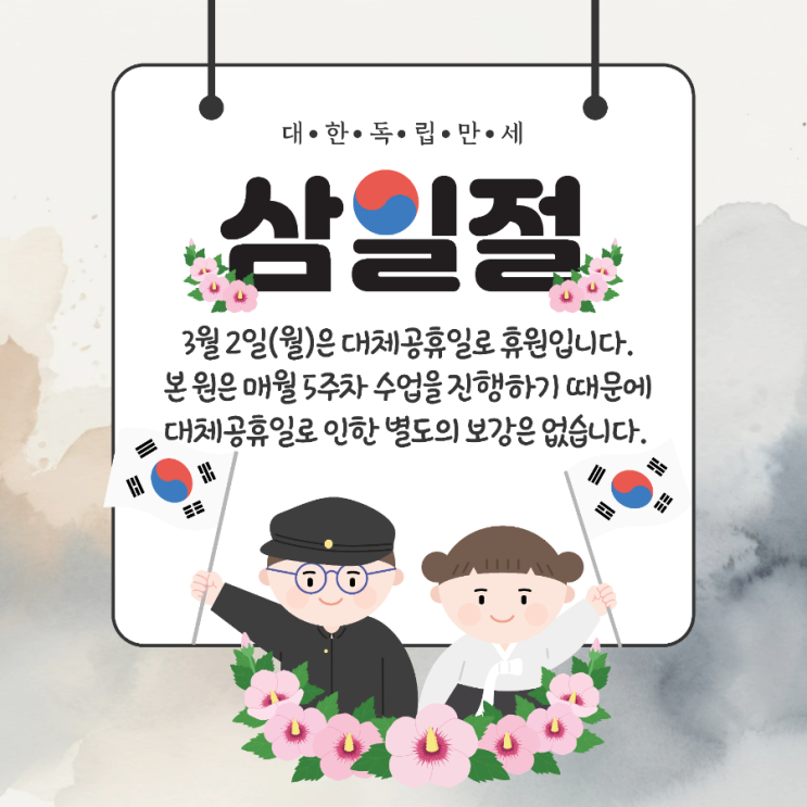 3월 2일 대체공휴일로 휴원입니다 :)