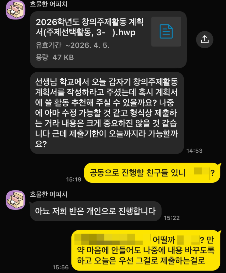안녕하세요. 탐스입시전략연구입니다. 신학기는 항상 변수의 연속입니다. 활동 공지 속도가 빠르고 수행평가 난이도가 있는 학교의 경우 대응 속도와 방향 설정이 결과를 좌우합니다. 탐스는 단순 관리가 아니라 “상황에 맞는 전략적 대응”을 중심으로 학생을 케어하고 있습니다. 이번 글에서는 근영여고 학생들의 실제 관리 사례를 바탕으로 탐스가 새학기에 어떻게 생기부를 케어하는지 말씀드리겠습니다. 1. 긴급공지 대응 예고 없이 올라오는 긴급 공지에 많은 학생들이 당황합니다. 이런 경우 혼자 준비하는 학생들은 무엇을 해야 할지 고민하는 시간만으로도 이미 절반 이상을 소모하게 됩니다. 탐스는 이런 상황에서 공지 확인 후 즉시....... <img src="https://blogthumb.pstatic.net/MjAyNjA0MDNfMjY1/MDAxNzc1MTg3NTIxMTQx.LSRoUx7QAe59cojy6OyjjuifKLbzFhqwb1BousTpgSUg.Arexw0adGYEAq3ZgBIMe9PZH7HVDQVImB94fGLTe9q0g.PNG/image.png?type=s3" />