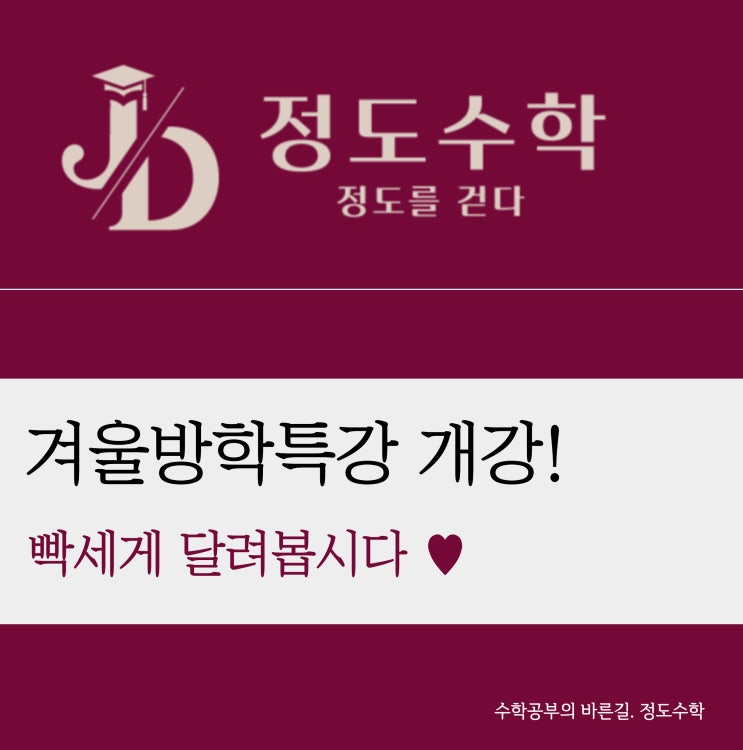 [목동정도수학] 겨울방학특강 개강입니다. ( 개별진도반 심화판서반 전타임 마감)