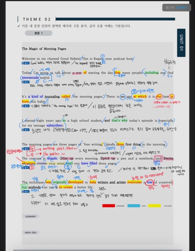 겉으로 보기엔 다 같은 공부 같지만, 영어본부의 토요일은 다릅니다. . . . 문장 하나를 보더라도 성분과 구조, 뉘앙스까지 완벽하게 분해합니다. . . . 1. [어휘] 파트 : 아는 것과 제대로 아는 것의 차이 학생이 스스로 아는 것과 모르는 것을 구분하게 만드는 메타인지 학습법. "단순 암기는 금방 잊힙니다. 클리닉 시간에는 단어의 미세한 쓰임새까지 교정하며 진짜 내 것으로 만듭니다." 2. [구문] “해석의 감” 을 “실력의 확신”으로 '기본기' 위에 쌓아 올리는 '심화 예측'입니다. . . . 지난 주 토요일에 진행된 고등 본문 클리닉 자료를 예로 들어볼까요? . . . . . . . . . . . . . 끊어 읽기 문법적....... <img src="https://blogthumb.pstatic.net/MjAyNjAzMDlfMTg4/MDAxNzczMDI1MTI5MDE2.PT7SgC0K10ewi9LP0ZKM1vq1e6r_pdnSSJE4xUqFJdEg.bHf75GGOWzklZ5M6bKgH7-eJKNpyT-53zZEmMiZyOUcg.JPEG/output%A3%DF2086607748.jpg?type=s3" />