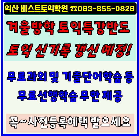 [익산토익학원] 12월 토익도, 겨울방학특강반도 토익 신기록 예정! 문법적으로 적절한 전치사 고르는 문제 #익산토익학원, #익산12월토익, #익산베스트토익학원, #익산토익전문학원, #익산토익과외, #익산토익스터디, #익산토익공부, #익산토익수업, #익산토익학원수강후기, #토익시제, #토익품사,토익접속사 #익산토익특강, #익산모의토익, #익산토익시험, #토익동사, #토익부사, #토익전치사, #토익접속사, #수동태, #능동태, #익산겨울방학토익, #익산토익학원사전등록혜택 익산 토익학원, 베스트토익학원의 11월~12월 가을학기반 2개월차가 진행되고 있습니다. 현재 가을학기반에 등록하여 열심히 토익을 공부하는 수강생들은 지금 본인의 토....... <img src="https://blogthumb.pstatic.net/MjAyNTEyMDdfMTEy/MDAxNzY1MDk3NzUzNjAz.ZKqHSSj0ggdPZtdGfJ-y1Wlfr7-xmkHtroM03JLP2qIg.yyHcHNbLd9z8ZrmSk3NIFVPttvAm45XXwMmFsOYqTI0g.PNG/image.png?type=s3" />