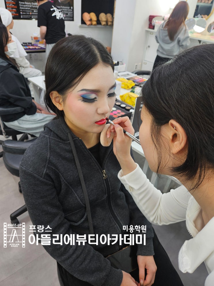 안녕하세요 #익산최대규모 #익산미용학원 #익산아뜰리에 미용학원입니다~! 오늘은 메이크럽 수업현장을 가져왔습니다! 그럼 같이 보실까요? 메이크업 수업은 얼굴에 메이크넙 해야만 수업을 진행할 수 있어요! 보통은 보이는 것 처럼 상호로 진행합니다. 메이크업 수업 3시간동안 내가 메이크업 진행 한 번, 모델 한번을 번갈아 가면서 합니다. 메이크업을 상호로 진행하면서 모델에대한 예의를 배우게 됩니다. 수강생들은 모두 초보자 이기때문에 선생님과는 다른 서투른 부분을 보일 수 있습니다. 모델을 하면서 수강생들의 서투른 부분을 수정해 나갑니다. 메이크업을 진행할때 실수를 해서 모델에게 피해를 주지 않기위해서는 기초가 탄탄해....... <img src="https://blogthumb.pstatic.net/MjAyNjAzMTNfMjIg/MDAxNzczMzY0MDAwNTM1.kpdKChfdtLIuc4_c_pFVqkhyjNWd5uBZv4CjYr5vvCcg.4FD0NK748mmnNkP9kPtHUFUPp-HSyqhN0KRI7y30R2Mg.JPEG/6.jpg?type=s3" />