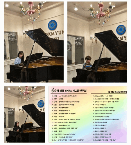 <제 2회 정기연주회 후기> 올해는 주말 오후로 시간을 맞추어 학부모초청 연주회를 준비했습니다~ 연주회를 준비하며 아이들의 성장함이 많이 느껴졌던 시간들~ 연주회를 마치고 작년 연주회 사진과 연주영상들을 비교해보니 아이들이 몸도 맘도 연주실력도 정말 많이 성장함이 보여서 더더욱 뿌듯하고 뭉클합니다~ 피아노 독주와 연탄곡 플릇.우크렐레.기타~ 작년보다 더 다양한 프로그램으로 풍부한시간이였습니다~ 내년이 또 기대됩니다~~^^ #연주회 #항동피아노 #숙명라엘 <img src="https://blogthumb.pstatic.net/MjAyNjAzMDJfMTA3/MDAxNzcyNDYzNTUyOTQ1.E7zYD__Qr7Lkv8lLjNZLiANjMj69YB01WTzJQoQIBCQg.Y-xSalYM884BjPF12KnOnZ9g1vv7EghWk58G7DGKPBIg.GIF/se%A3%DFone%A3%DFani%A3%DF20260302%A3%DF235858%A3%DFa.gif?type=s3" />