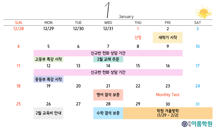 [연세이룸학원] 1월 학사일정