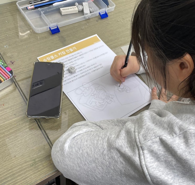 안녕하세요! 오늘은 크리스마스에 진행한 이벤트인 슈링클스 키링만들기 후기를 가져왔어요. 슈링클스 키링은 열을 가하면 작아지는 슈링크 필름에 직접 그림을 그라고 줄을 달아 만드는 키링이랍니다~ 그림은 학생들이 좋아하는 캐릭터부터 음식, 사물까지 자유롭게 진행하기로 했습니다! 아래에서 학생들이 어떻게 진행했는지 같이 보아요~ 가장 먼저 해야 하는 건!!! 스케치입니다~ 바로 슈링크 필름에 그리는게 아니라, 밑그림을 먼저 진행한 후 슈링크 필름에 그려야 완성도가 높게 나온답니다. 다들 너무 잘 그려서 완성작이 기대되네요~! 이렇게 미리 준비한 A4에 밑그림을 다 그렸다면, 슈링클 필름을 덧대어서 그려야 할 차례입니다~ 슈....... <img src="https://blogthumb.pstatic.net/MjAyNjAxMDJfNjQg/MDAxNzY3MzMzNTA5NzM0.HY50TKjSxNHIbo2VSd_I3OjtMTwpf251LFMrsz0ETAgg.Hc6yE6u3-edQKiG3o6NQYOBc47J4JiYo36GouYgVXOgg.JPEG/KakaoTalk_20251227_113400483_21.jpg?type=s3" />