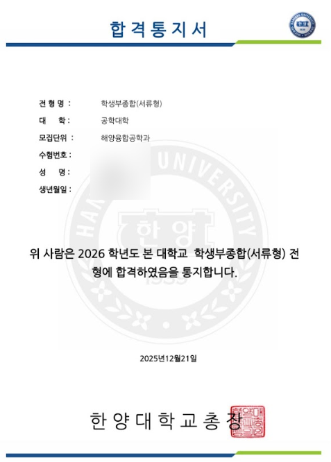 전교과 내신 3.0, 한양대 ERICA 종합전형 합격 스토리 - 소수 모집 학과에서 '전공 서사'로 만든 합격 전략