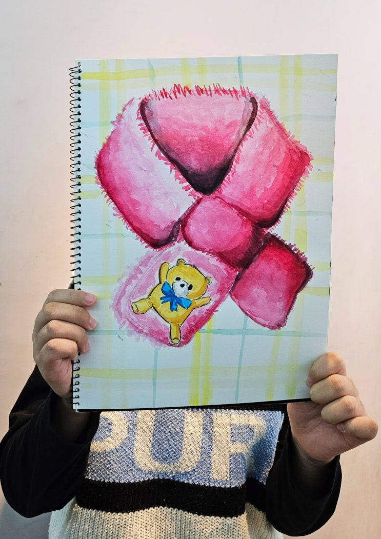 안녕하세요~ 아이들이 행복한 상상을 마음껏 펼칠 수 있는 곳 완주 봉동 창의더함 미술학원 입니다 이번 수업에서는 계절의 변화를 이야기 나누며, 겨울을 따뜻하게 보내기 위해 꼭 필요한 물건인 목도리를 주제로 표현 활동을 진행했답니다! 겨울이 되면 기온이 낮아지고 먹이가 부족해지면서 자연 속 동물과 식물들은 각자만의 방식으로 ‘겨울나기’를 준비하게 됩니다. 목도리가 주는 따뜻한 이미지를 떠올리며 전체적인 형태와 길이를 관찰한 뒤 스케치부터 진행해봤어요. 목도리가 늘어지는 방향과 두께, 자연스럽게 접히는 부분을 꼼꼼히 살펴보며 형태를 잡아주었어요. 이후 물감을 사용해 수채화 기법으로 채색을 진행하며 색의 번짐과....... <img src="https://blogthumb.pstatic.net/MjAyNjAxMjZfMTM2/MDAxNzY5NDIwMDIzMjYx.JHXGVOoguE9jPM3tF_nSkyqMy5RwNZ5uIFmNCBnKqVog.cGR314_svuiXVMLAU4Iu8WpEZq8enYIxu-VfexUVa_Ug.JPEG/18.jpg?type=s3" />