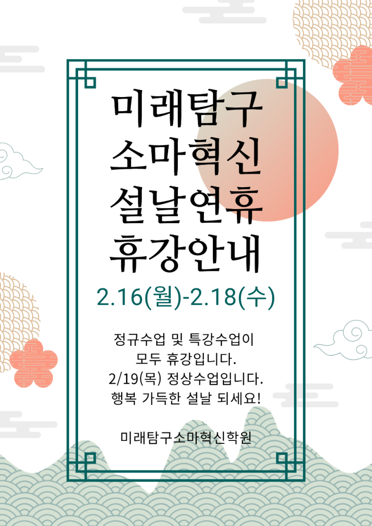 설연휴 휴강안내_전주혁신도시수학학원_미래탐구소마혁신학원
