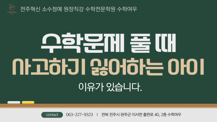 수학문제 풀 때 사고하기 싫어하는 아이, 이유가 있습니다. 전주 혁신 수학학원 수학여우