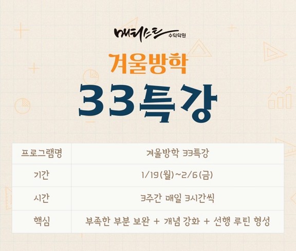 3시간 × 3주, 실력이 달라지는 시간! 겨울방학 33특강