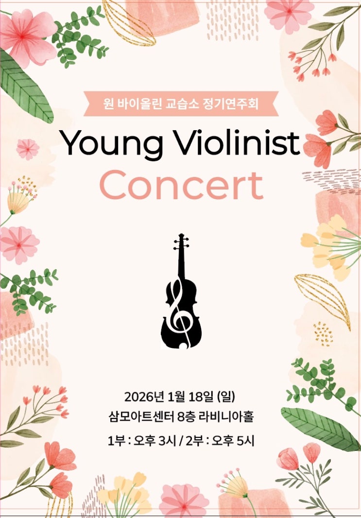원 바이올린 교습소 정기연주회 Young Violinist Concert ️1월 18일 일요일 장소 : 삼모아트센터 라비니아홀 1부 : 3시 / 2부 : 5시 안녕하세요 원바이올린입니다 1월 18일에 원바이올린 교습소의 정기연주회가 있습니다✨ 우리 아이들이 평일과 주말 할것없이 열심히 연습하며 준비하고 있습니다 요새 학원 연습실이 하루종일 다 차있었지요☺️ 기대해주시고 많은 참석 부탁드립니다 (이번에 연주회 신청하지 않은 학생들도 관람이 가능합니다☺️) 원바이올린 상담 문의 010.6589.7195 http://pf.kakao.com/_zEyIG https://open.kakao.com/o/sN8V7Hzf #바이올린레슨 #원바이올린 #서울바이올린 #바....... <img src="https://blogthumb.pstatic.net/MjAyNjAxMDhfMTA3/MDAxNzY3ODc2NDQxMzQ4.-9fvrAHNPHtqv-PYb6h4wmgxE7j2zk-GAVmCzf-ap04g.h5lR9Hz4hNwkf2oDKbz2QMS9QK3DW15sOWskaqDIcD8g.JPEG/IMG%A3%DF2699.jpg?type=s3" />