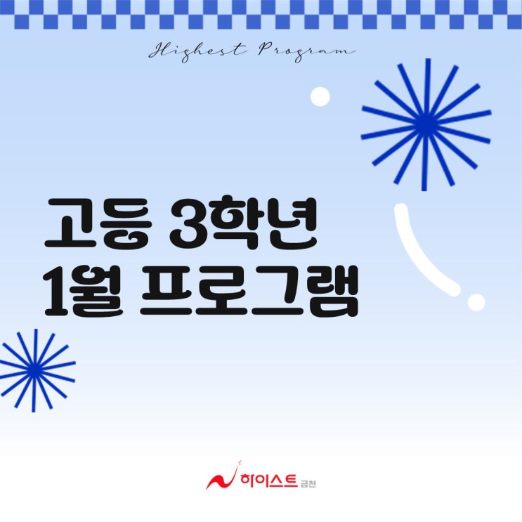 2026 고등3학년 1월 프로그램 하이스트 금천 안녕하세요 하이스트 금천학원입니다^^ 2026 고등3학년 1월 프로그램을 소개합니다. 하이스트만의 고등 수업 특징 ✅ 학교 내신 완벽 대비 학교별 커리큘럼 분석으로 최적화된 내신 대비 시험 전날 직전대비 진행 학교별 핵심 요점 정리 교재 또는 프린트 제공 ▶ 초/중/고 입시전문학원 하이스트 금천 교육문의 ☎ 02) 803-3366 <img src="https://blogthumb.pstatic.net/MjAyNjAxMDhfMzQg/MDAxNzY3ODYwOTg0NTA2.Cnv3TPpU-NJEjypF6sql6zZWGzd4cTHKpVMRKW5OYd0g.mvTQDwgOBomDJe9i_glJ2vykdpjUijC2XPnowna-JCEg.JPEG/%BD%BD%B6%F3%C0%CC%B5%E59.JPG?type=s3" />