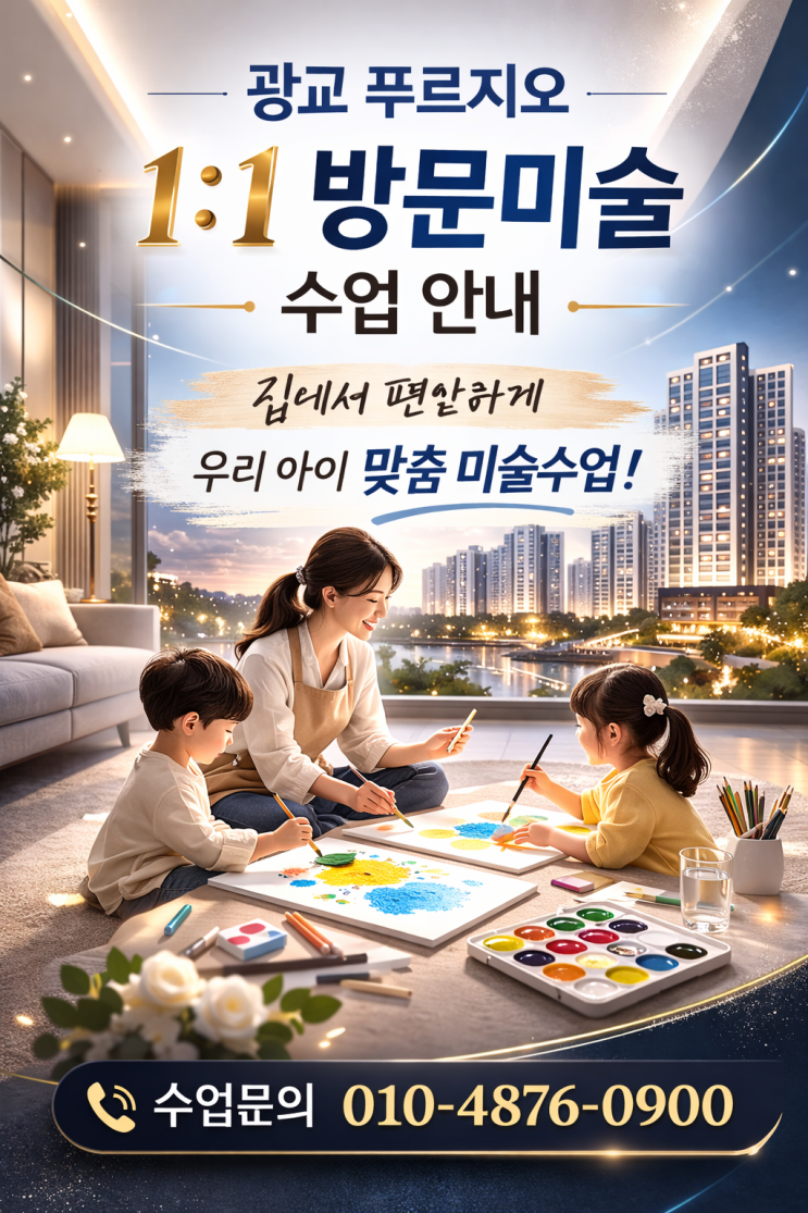 ChatGPT, Gemini 미술수업 AI시대를 살아갈 아이들에게 어떻게 교육해야할까요? 홍익아트가 함께 합니다. 광교 푸르지오에 거주하시는 학부모님들 사이에서 방문미술 문의가 꾸준히 이어지고 있습니다. 미술학원 대신 집에서 미술수업을 진행하면 어떤 점이 다를까요? 수원시 영통구 광교는 초등학교와 대단지 아파트가 밀집된 지역입니다. 광교중앙역 인근과 광교 푸르지오 단지는 특히 자녀 연령대가 다양한 곳이라 유아미술부터 초등미술까지 상담이 고르게 들어옵니다. 영통·광교 지역 특성상 이동 시간과 안전을 고려해 가정방문 수업을 선택하는 가정이 늘고 있습니다. 영통·광교 방문미술 관련 문의는 전화문의 ☎️ 010-4876-0900 상담 가....... <img src="https://blogthumb.pstatic.net/MjAyNjAzMDNfMTQ2/MDAxNzcyNDk4NjgxODE0.8EzKqLD1pg3U7zcRAgKaUJxUznlPfp0TbZgYWI1unIMg.ap7qNDOfGECjF8kiQyvHBruTD3PZFR4L0y0Y27vGOJgg.PNG/%B1%A4%B1%B3%C7%AA%B8%A3%C1%F6%BF%C0%B9%E6%B9%AE%B9%CC%BC%FA.png?type=s3" />
