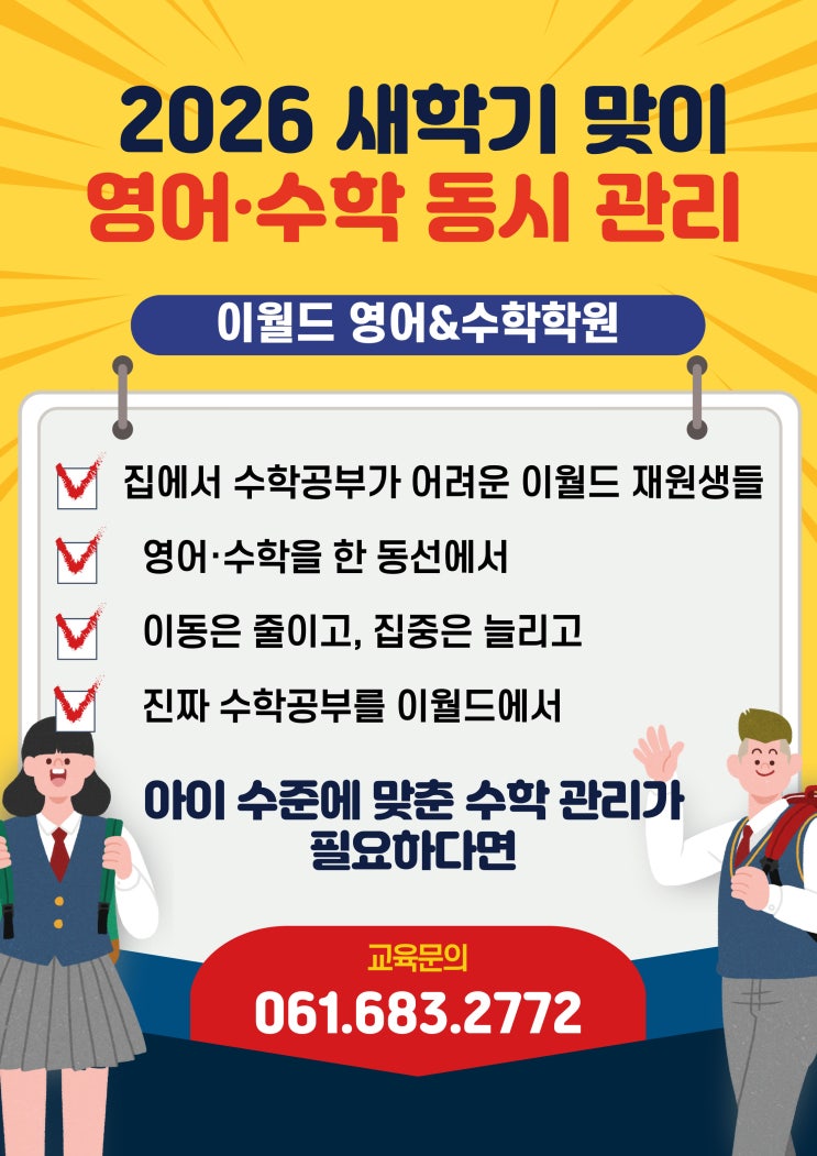 [이월드 수학학원]2026 새학기 맞이 영어·수학 동시 관리