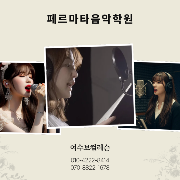 어릴 때는 분명 친구들 사이에서 노래를 잘한다고 칭찬을 많이 받아 자신감이 넘쳤는데 사회생활을 하면서 어떻게 소리를 냈는지 기억이 나지 않거나 그 시절과 비슷하게 노래를 부르려고 하다 보면 심하게 목에 무리가 오거나 결절 현상을 겪는 분들이 많습니다. 여수에서 보컬에 나름 자신이 있다고 생각했던 직장인 분들 중에 취미로라도 레슨을 받아 원래의 성취감과 자신감을 느껴보고 싶으신 분들은 페르마타에서 목 부상 위험이 있는 습관을 교정하고 목소리 톤을 한결 세련된 느낌으로 바꿔 자신만의 목표를 이루거나 잘못된 발성이나 호흡도 개선해 매력 있는 목소리 톤으로 변화되는 분들도 많습니다. 페르마타에는 다양한 스타일을 지....... <img src="https://blogthumb.pstatic.net/MjAyNjAyMDlfOTkg/MDAxNzcwNTkyMzk0MzY4.IGJcEewG5sfyMMKzb8AwIjB0sSF15KGGhwO7opPXPoUg.ayeVw6JGENQ-BNKedykFxUSv_Saphz0OdK_ZQ9t1Mw8g.PNG/%C1%A6%B8%F1%C0%BB_%C0%D4%B7%C2%C7%D8%C1%D6%BC%BC%BF%E4..png?type=s3" />