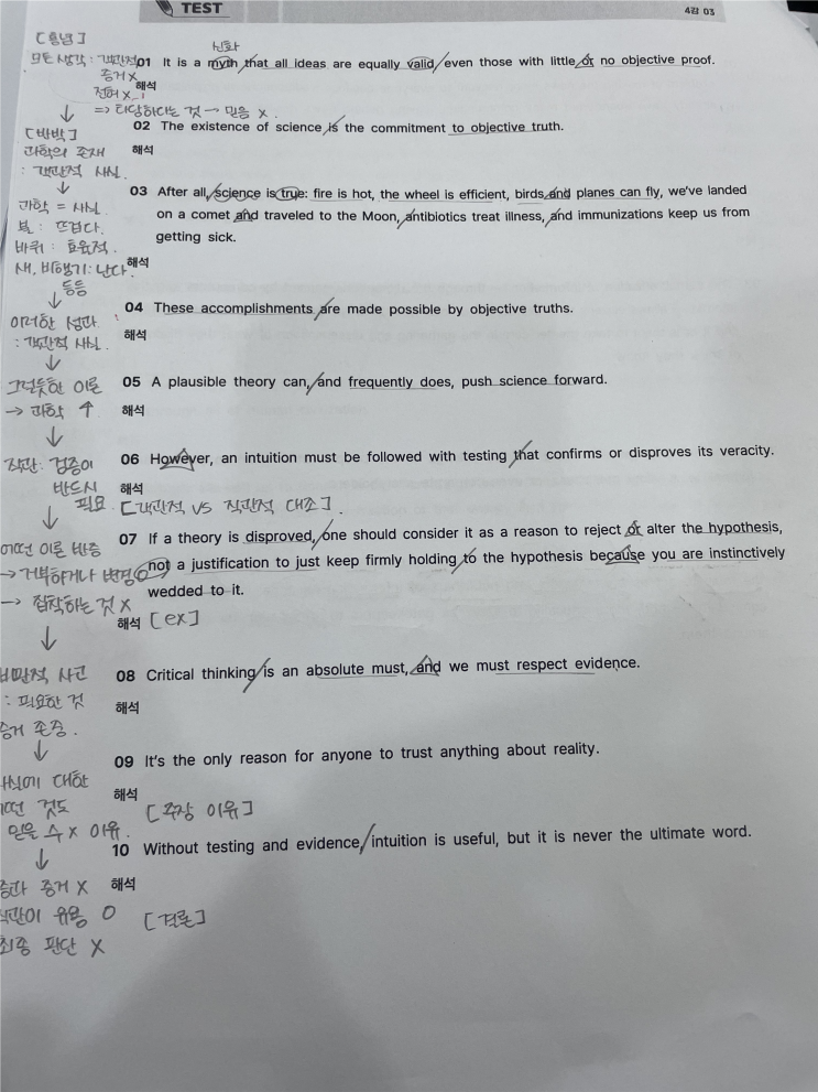 영어를 잘 한다는것은 단어를 많이 아는것도, 문장을 많이 해석 하는것도 아닙니다. 글의 흐름을 읽고 판단할수 있는 힘 그게 진짜 실력입니다. 학생들이 가장 많이 하는 착각이 있습니다. 해석은 되는데 무슨말인지 모르겠어요 해석을 넘어서 흐름을 읽고 근거를 판단하는 힘 <img src="https://blogthumb.pstatic.net/MjAyNjAzMThfMTI4/MDAxNzczODI1NjYxNTIw._G0i7Ys6pwiYnE60JPxLEUpYLx9JEo-zjQJvYa4s1a0g.7lpFV-W-8GxaFGx3aPHtWDo43BKt5IB01Coty4tOxPMg.PNG/image.png?type=s3" />
