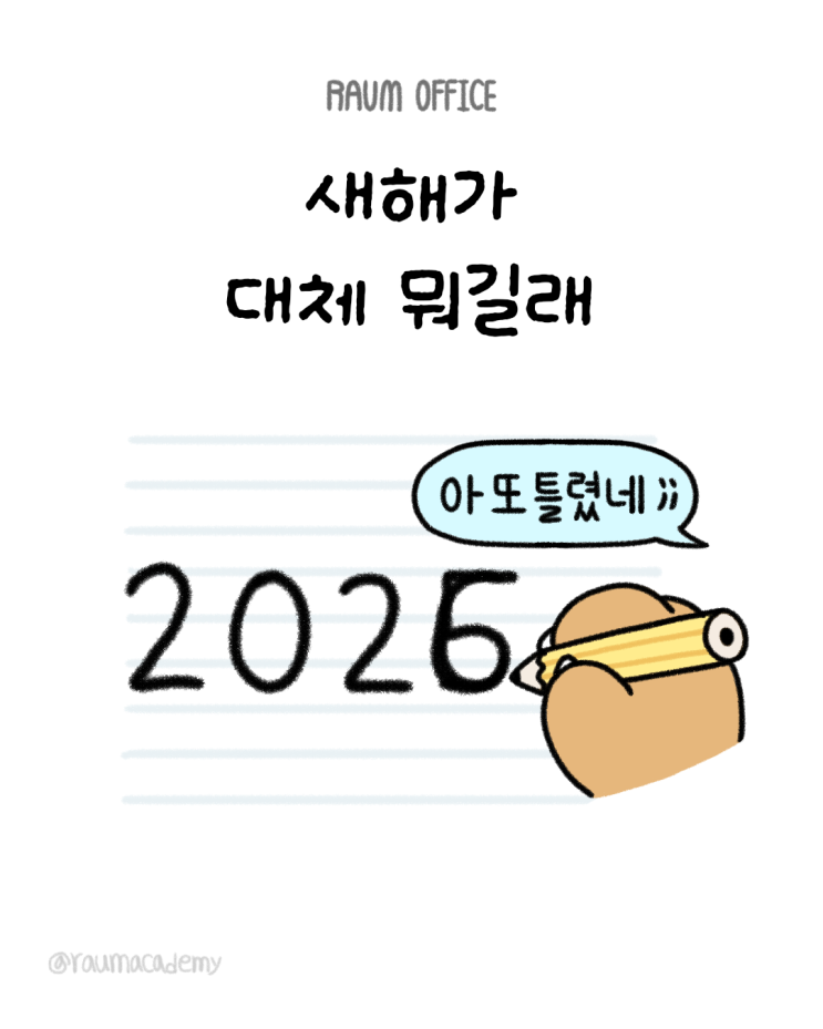 안녕하세요 온 오프라인을 넘어 함께하는 아티스트들의 공간 라움아카데미 입니다 아직도 아무 생각 없이 2025년을 적다가 뭔가 이상한 느낌이 들어서 6으로 급하게 고치는 저) 혹시 나이 안 세는 분들 계세요? 26년에는 그래서 몇 살이더라.. 누가 나이 물어보면 고민하다가 그냥 저의 출고년도(!)를 말해버립니다. 아 우리 만 나이로 통일하기로 했잖아요!! 나이는 생일에 먹고 새해에는 떡국만 먹기로 해요 <img src="https://blogthumb.pstatic.net/MjAyNjAxMjJfMjY3/MDAxNzY5MDQ0Mjk2NzAz.Lvut1tje0iWywGWLn7Iqk_xQaLNYBVQW4cyj-3C4IAQg.ojxA3CpxvN0QFfEkoFArBXTWlSsxK4ZYMh3vj-rX4Zsg.PNG/%C5%B8%C0%CC%C6%B2.png?type=s3" />