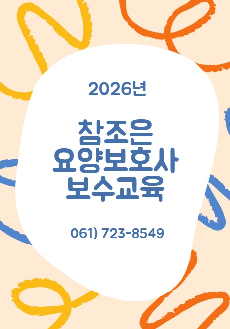 순천 참조은 요양보호사 보수교육생 모집중 월 2회 토요일 실시 상담 환영 ☎️061) 723-8549☎️ ☎️010-7231-8549☎️ 2026년 요양보호사 보수교육 안내 요양보호사의 전문성 향상과 서비스 질 개선을 위해 정기적인 보수교육이 의무화되어 있습니다. 관련 법령 - 노인장기요양보험법 제 35조의 4(보수교육) 요양보호사의 자질 향상과 전문성 강화를 위해 보수교육 이수 의무화 - 노인장기요양보험법 시행령 제 11조의 2 교육대상, 주기, 방법 등 세부사항 규정 대상 및 보수교육 주기 - 대상 : 장기요양기관에 소속되어 근무중인 요양보호사 - 교육주기 : 2년마다 8시간 이상 교육 이수 2026년 교육 대상 - 짝수 연....... <img src="https://blogthumb.pstatic.net/MjAyNjAzMThfNDEg/MDAxNzczODE4NDkzMjgy.IUAm6zX345LHQi0U44k74pgmG-A_4nezUndfjJnuk_0g.PBYfbH98-Jo2whILQkJNulS7hV9cNmwPBl94Ksq_sRQg.JPEG/%BA%B8%BD%B4%B1%B7%C0%B0.jpg?type=s3" />