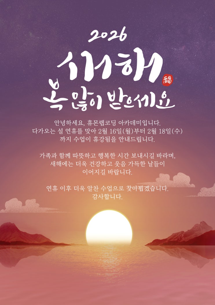 [반포코딩학원] 휴몬랩코딩 아카데미 반포센터 설날 연휴 안내