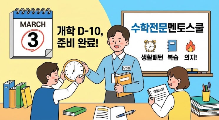 [수학전문멘토스쿨] 3월 3일 개학 D-10! 낭만쌤이 알려주는 새 학기 완벽 준비법