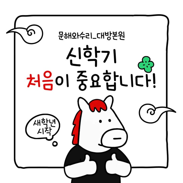 안녕하세요. 문해와수리_대방본원입니다. 신학기 한 달이 1년을 좌우합니다 새 학년이 시작되는 3월. 설렘도 있지만 학부모님들 마음 한편에는 늘 이런 걱정이 함께합니다. “이번 학년은 잘 따라갈 수 있을까?” “수학이 더 어려워진다던데…” “지금 시작해도 괜찮을까?” 사실 신학기에서 가장 중요한 시기는 ‘처음 한 달’ 입니다. 왜 신학기 한 달이 중요할까요? ① 공부 리듬이 결정됩니다 3월은 단순한 시작이 아니라 아이의 생활 패턴과 학습 리듬이 자리 잡는 시기입니다. 이때 흐트러지면 ✔ 숙제 미루기 ✔ 집중력 저하 ✔ 학습 피로 누적 으로 이어지기 쉽습니다. 반대로 잘 잡히면 1년 내내 훨씬 수월하게 갑니다. ② 개념 공백....... <img src="https://blogthumb.pstatic.net/MjAyNjAyMjFfMjc3/MDAxNzcxNjM3NTM0NTI1.UDDyQmKZlzx02T1Q_uqWCPJOseOGuZR41lpcwBkiOWog.vEQH--bF-v81PpH3fuxdjwkYJ4zhkx25OCqdpYVtZEUg.JPEG/2.jpg?type=s3" />