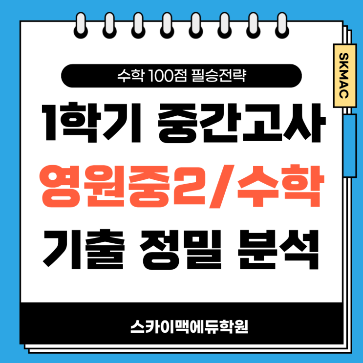[영원중2] 2025 기출 정밀 분석 & 2026 1학기 중간고사 만점 전략 안녕하세요! 영등포 지역 중학교 내신 완벽 대비, 스카이맥에듀학원 입니다. 2026년 새 학기가 시작되면서 중학교 2학년 첫 시험에 대한 긴장감이 높아지고 있습니다. 작년(2025년) 영원중 기출 문제를 철저히 분석하여, 올해 시험을 어떻게 준비해야 할지 핵심 가이드를 공개합니다! # 2025년 영원중2 기출 데이터 분석 지난 2025년 영원중 중간고사는 개념의 함정과 실생활 응용이 적절히 섞인 변별력 있는 구성이었습니다. 유리수와 순환소수 (문제 1~8번): - 순환소수를 분수로 고치는 공식뿐만 아니라, 그 원리를 묻는 10의 거듭제곱 이용 문제(문제 1번 ⑤번 보기)가 출....... <img src="https://blogthumb.pstatic.net/MjAyNjAyMjRfMTIy/MDAxNzcxOTI4OTY4NDc3.i9ZHwIY2fxFTBkowvdn9e66cPqh0IgTNF_dRPbwODm0g.Z-e45d1qCiTBhWiE42BTUcOSuU7423wmWgKqiOQ8a1cg.PNG/%BF%B5%BF%F8%C1%DF%BC%F6%C7%D0.png?type=s3" />
