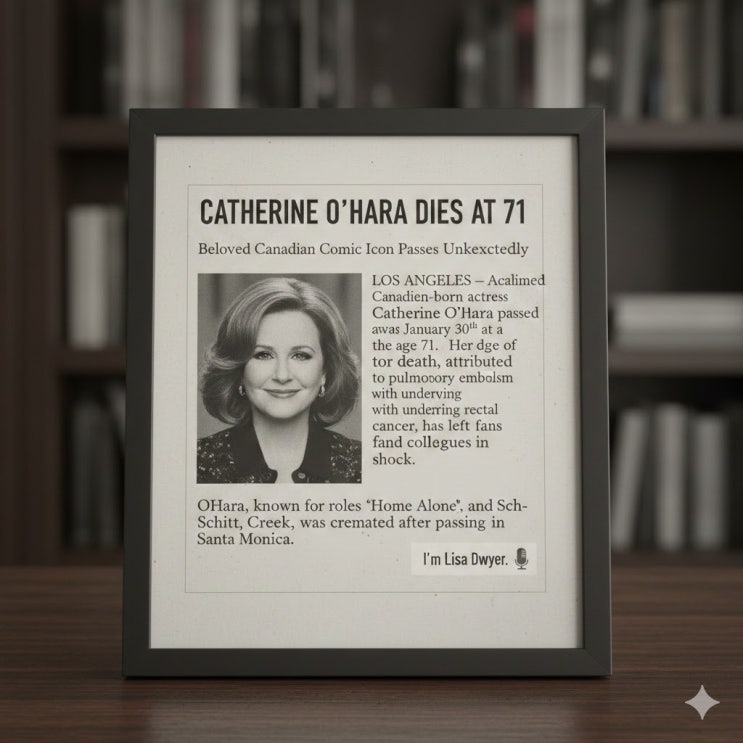 The beloved Canadian-born comic actor Catherine O'Hara died from a pulmonary embolism with rectal cancer as the underlying cause. A Los Angeles County death certificate lists the embolism as the immediate cause of her death on January 30 at age 71. The doctor who signed the certificate had been treating O'Hara since March of last year. She died at a hospital in Santa Monica and was later cremated. O'Hara starred in two Home Alone movies, winning Emmys for SCTV and Schitt's Creek. Her death took many by surprise. I'm Lisa Dwyer. 1️⃣ The beloved Canadian-born comic act....... <img src="https://blogthumb.pstatic.net/MjAyNjAyMTJfMjM5/MDAxNzcwODU3MjE3NDMw.IlNib_GBFM_XUQiepsTqwYm2ueSP4UxTflBu8yC02hQg.oNmffwjRbTfAnrWFjrwo9nqjB36vvY2S87CeJzTLFw0g.JPEG/unnamed_%2870%29.jpg?type=s3" />