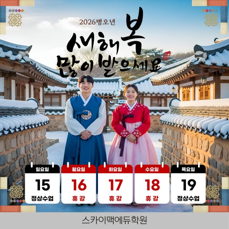스카이맥에듀학원 2월 휴강일 안내