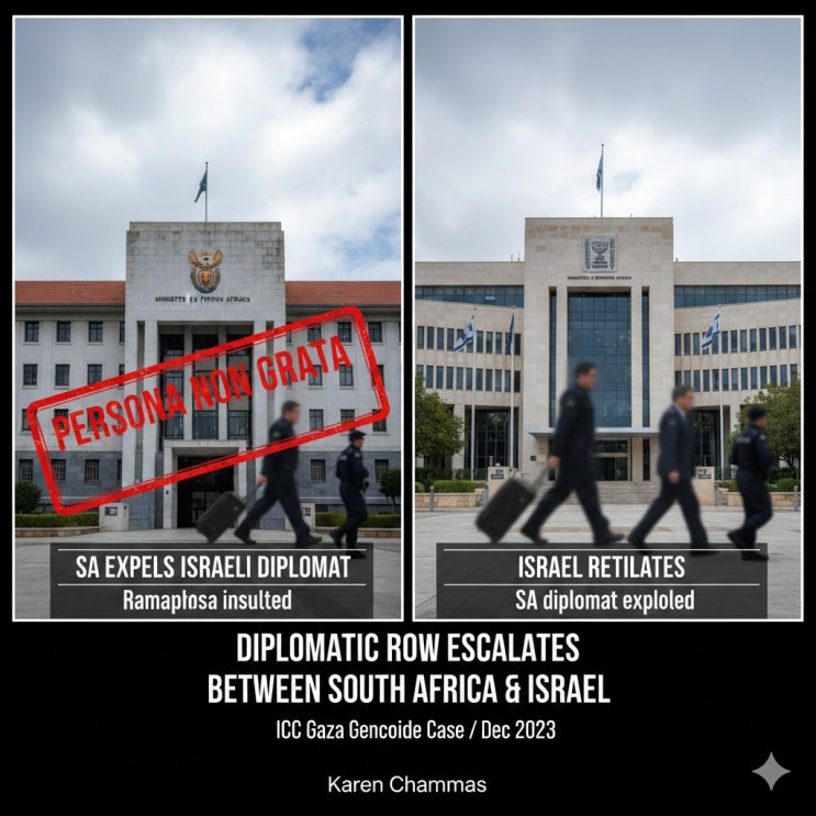 South Africa has declared Israel's deputy ambassador persona non grata and ordered him to leave the country within 72 hours. The South African Foreign Ministry said it was expelling Ariel Seidman, the chargé d’affaires at the Israeli Embassy, because of repeated Israeli social media posts insulting South African President Cyril Ramaphosa. In December 2023, South Africa launched a case at the International Court of Justice, alleging Israel is committing genocide in Gaza. Later on Friday, Israel responded by expelling South Africa's most senior diplomat there. I'm Karen Chammas. ....... <img src="https://blogthumb.pstatic.net/MjAyNjAyMDRfMjc3/MDAxNzcwMTgyNjE2Mjgy.shWM4DtQq6t7b1KMxKQ6OGPtGUDEjs_3abcvVMYcXg4g.Xxw4RbG2iP8npmSKtYb3Ql6arWdczmAj7QzMzXz_lMMg.JPEG/unnamed_%2866%29.jpg?type=s3" />