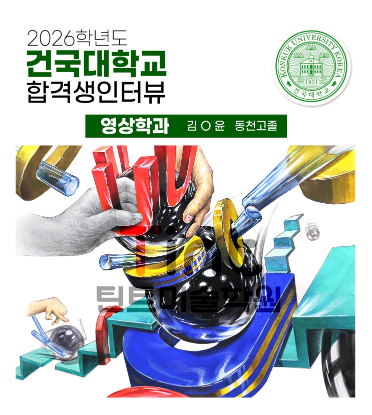 안녕하세요! 디자인 입시전문 틴트미술학원입니다. Q. 지원학과의 지원동기는 무엇이며, 어떻게 준비했나요? A. 건대라는 학교에 꼭 가고싶어서 가군에 있는 유일한 학과인 영상학과에 지원하게 되었고, 영상학과에서 출제하는 시험 유형과 잘 맞는 것 같아서 지원하게 되었습니다. 건대를 준비할 때는 구도에 초점을 더 맞추고 기출 문제를 러프스케치로 그려보면서 준비하였습니다. Q. 수능성적 관리는 어떻게 했나요? A. 대학교를 다니는 중에 반수를 준비했어서 1학기는 대학 생활을 하고 2학기에 휴학 후, 7월에 독학 기숙학원에서 인강을 들으며 수능을 준비 했습니다. 반수를 하는 입장에서 시간이 많지 않았기에 국어는 화작을 선택하여....... <img src="https://blogthumb.pstatic.net/MjAyNjAzMDdfMjI0/MDAxNzcyODY5NDE2MzU1.hl7vhgvdONe-shDXjOH1il0jqB89d5rAvebtnE1NMbMg.b0ZLQS6nLgjnDnh1mNSPINM7iTjlBD0KfoO_fhfXb5Eg.JPEG/2026_%B0%C7%B1%B9%B4%EB_%C7%D5%B0%DD_%BF%B5%BB%F3%C7%D0%B0%FA_%C7%D5%B0%DD%BB%FD%C0%CE%C5%CD%BA%E46.jpg?type=s3" />