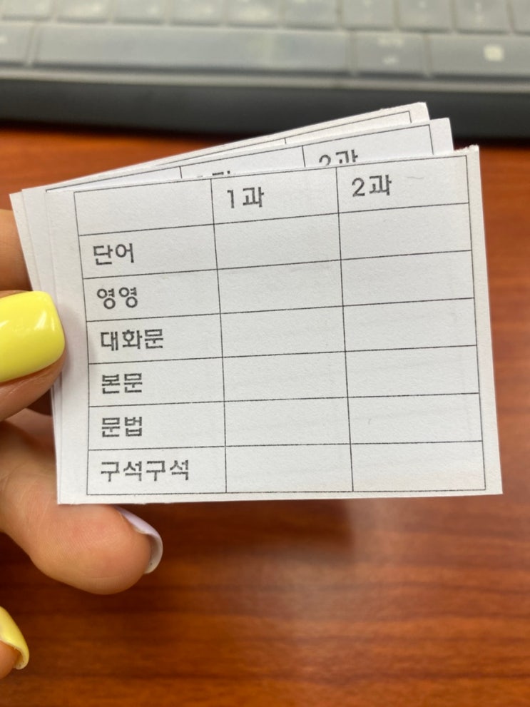 안녕하세요!! 행복한 강쌤입니다. 한달 뒤면 화순관내 중학교 중간고사입니다. 그래서 저희도 중간고사 준비를 시작했어요! 저희원에서는 먼저 1,2과 단어,본문, 영영단어까지 꼼꼼하게 암기시킵니다. 우리 아이들 스스로 확인해볼수 있도록 체크리스트를 만들어서 문제집앞에 모두 붙여주었답니다. 완료가 되면 저렇게 동그라미로 체크를 합니다. 열심히 단어 시험을 보고 있네요!! 단어는 매일 1,2과를 번갈아 가면서 봅니다 완전히 암기될때까지 계속됩니다. 먼저 암기를 하고, 문법설명을 들으면, 문제는 술술 풀리니까요. 아이들이 원에 도착하면, 그날그날 해야할 체크리스트를 포스트 잇에 기록해주고, 모두 완료하면 귀가하게 됩니다. 내....... <img src="https://blogthumb.pstatic.net/MjAyNjA0MDJfMTg3/MDAxNzc1MTE2MDcxMTYx.AtE4VRHNcMQLWLe2J-gpKLJN6rtCOmsve-gpS5SfhPEg.9e9-vs5lgePdbU8-3s1GQCIRe0uL3JScBVEI6UH1U98g.JPEG/IMG%A3%DF1302.jpg?type=s3" />