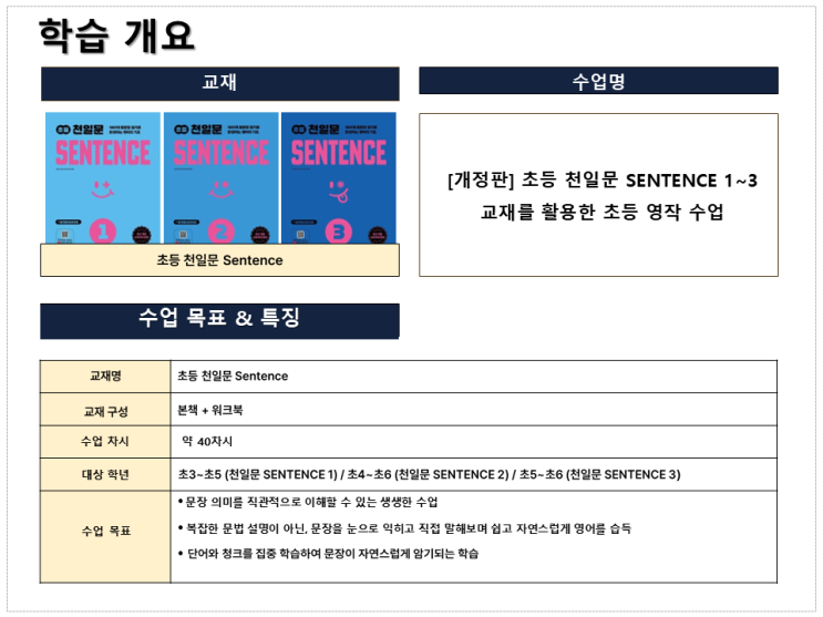 초등 천일문 SETNENCE 1-3 교재를 활용한 초등 영작 수업 반 모집합니다 ~ 초등 영어, 이제는 ‘영작 실력’이 중요해지고 있습니다! 2026년부터 새롭게 적용되는 교육과정에서는 단순한 암기를 넘어 말하기, 쓰기, 발표까지 고루 요구됩니다. 이제는 단편적인 단어 학습만으로는 실력을 키우기 어려우며, 문장을 자연스럽게 다루는 힘이 필요합니다. ✅ 핵심 패턴 110개 ✅ 실생활 문장 1,001개 ✅ 1:1 밀착 피드백까지 엠베스트SE 초등 천일문 SENTENCE를 통해 문장 단위로 학습하며 영어 기초를 탄탄히 다지고, 아이의 영어에 대한 자신감도 자연스럽게 키울 수 있습니다. 지금, 우리 아이의 영어 학습을 새롭게 시작해 보세요~ 수업 문....... <img src="https://blogthumb.pstatic.net/MjAyNjAzMjhfMjE2/MDAxNzc0Njc4OTMyMzc2.KVA9fh1fXNiuInKzxp4bski4XhC_YxGEH-wocqZ_StQg.3gzTH3BU721p-elOarBrDARfjtktKdFHvm8m4qiWfNEg.PNG/KakaoTalk_20260328_152142724.png?type=s3" />